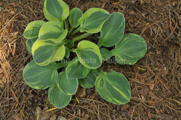 We don't know the origin of this plant but from the name, it should be safe to say that it is a streaked version of H. 'Blue Mouse Ears'...duh. If that is true, it should be a miniature size hosta that bears clusters of pale purple flowers in July.