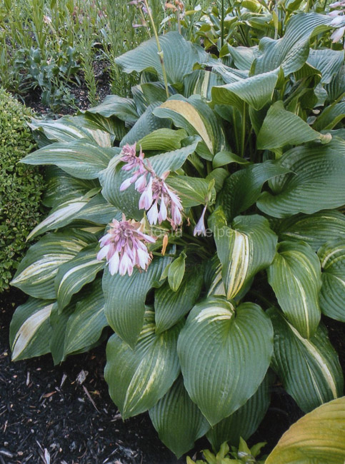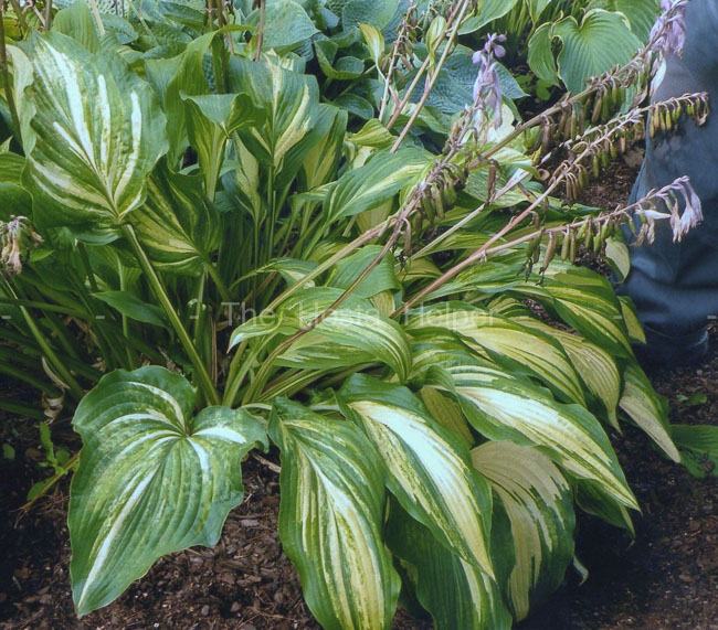 inches tall followed by green streaked seed pods. According to the registration materials: "...striking variegation, good variegated pod