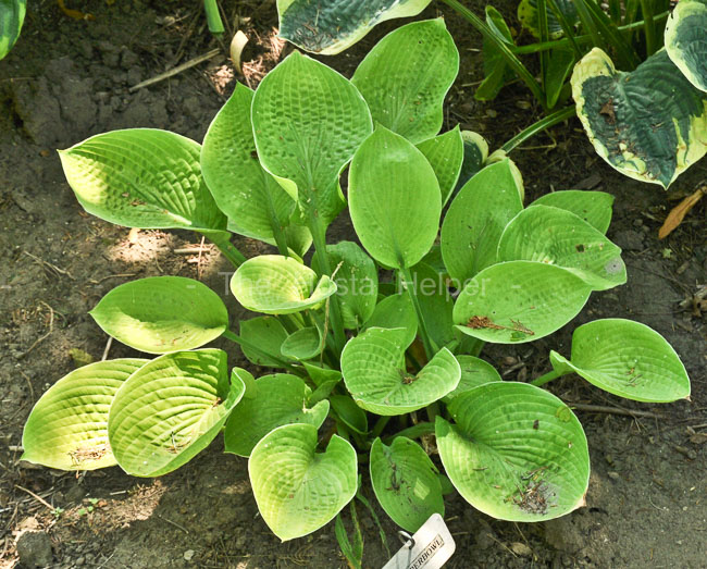 Grenfell (2009) states: "Origin: H. 'Tokudama' hybrid.. .Slow to increase...Leaves are even more deeply cupped than similar
