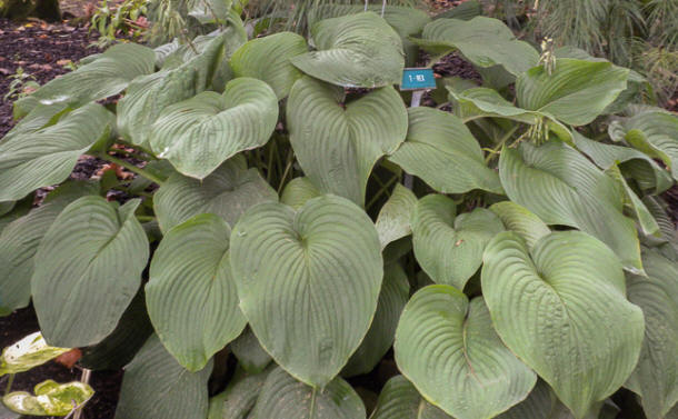 The New Encyclopedia of Hostas by Diana Grenfell (2009) states: "Site in light shade with plenty of moisture to keep the massive leaves turgid as lack of sufficient water can cause wilting. Slow to start but eventually huge...Lovely in a woodland among plants with variegated leaves."