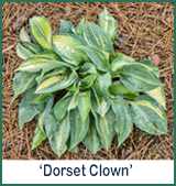 ....I have difficulty choosing a single favorite hosta but, when I am pressed, more often than not H. 'June' is my choice. This queen of hostas is the best-known sport of 'Halcyon', taking the dusty blue leaves of the parent and adding a splash of yellow to the centers of the leaves...As with 'Goldbrook Glimmer', climate plays a huge part in the appearance of 'June'. It needs a little bit of direct sun early in the season to bring out the brightest golden-yellow tones in the centers of the leaves, while cooler temperatures are needed for the best blue coloration. (Specimens of 'June' that I've seen in Britain and New Zealand surpass all description.)"