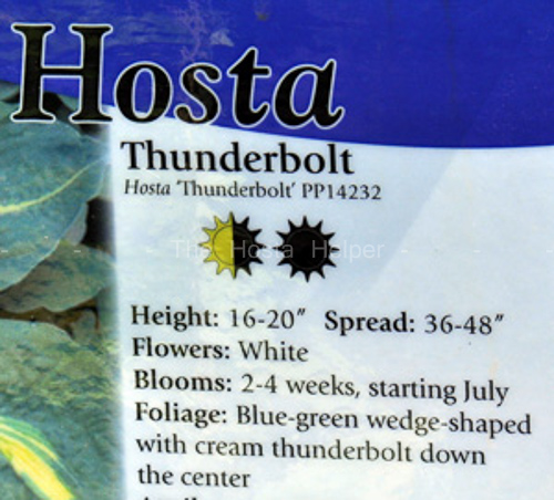 Abstract: A new cultivar of Hosta plant named ‘Thunderbolt’ that is characterized by vigor, white flowers in late spring and large variegated blue-green leaves with centers that change in color from golden to cream-white as the plant matures. In combination these traits set ‘Thunderbolt’ apart from all other existing varieties of Hosta known to the inventor.