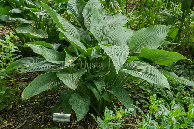 medium size (18 inches high by 40 inches wide or larger) mound of wavy, deeply veined, narrowly ovate
