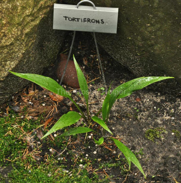W. George Schmid in The Hosta Journal (2009 Vol. 40 No. 2) states that, "...'Tortifrons'. This is yet another of the "difficult ones."...We think 'Tortifrons' was originally found as a wild sport. It has been in Japanese cultivation for many years but it has never been located in the wild.
