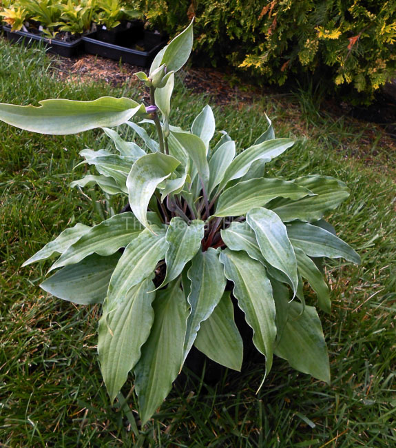 There is an image of this cultivar on the Hosta Library. From the photo on the HL website, it appears to be an upright, small size hosta with intensely blue-green leaves. The petioles and flower scapes have reddish purple dots. This non-registered cultivar was originated by Ron Livingston of Michigan.
