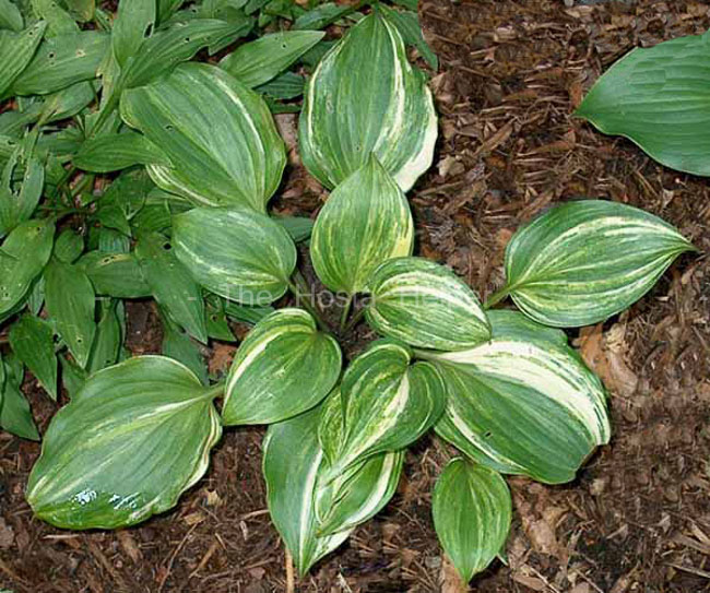 wide) mound medium green foliage that has yellow and greenish white streaked