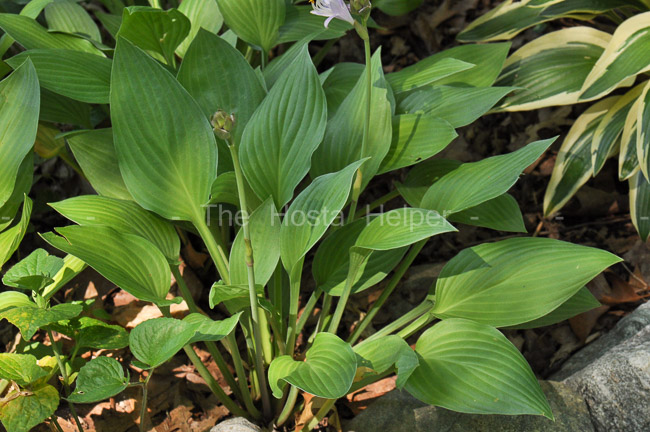 This hosta was labeled "Uguis Spring Bird" but the actual cultivar name is Hosta 'Uguis' which, in Japanese, means "spring bird".