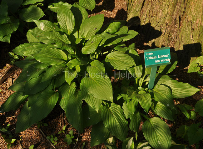 An article about H. 'Undulata' and its origins by Bob Solberg in The Hosta Journal (1996 Vol. 27 No. 1) states that, "H. 'Undulata Erromena' is a garden sport, first originated in Holland and introduced in 1867 by von Siebold. It is not found in the wild of Japan. H. 'Undulata' is not a sport of it...While the data presented here strongly support these conclusions, they do not provide absolute proof. DNA testing of these cultivars would prove very interesting."