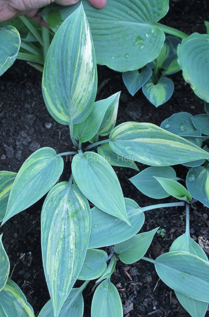 This non-registered cultivar is a hybrid of H. 'Mikawa no Yuki' × H. 'Tsuma Tajima' which was introduced by Jeroen Linneman of the Netherlands in 2016. It is a small size hosta with narrowly ovate, blue-green leaves with yellow streaked variegation.
