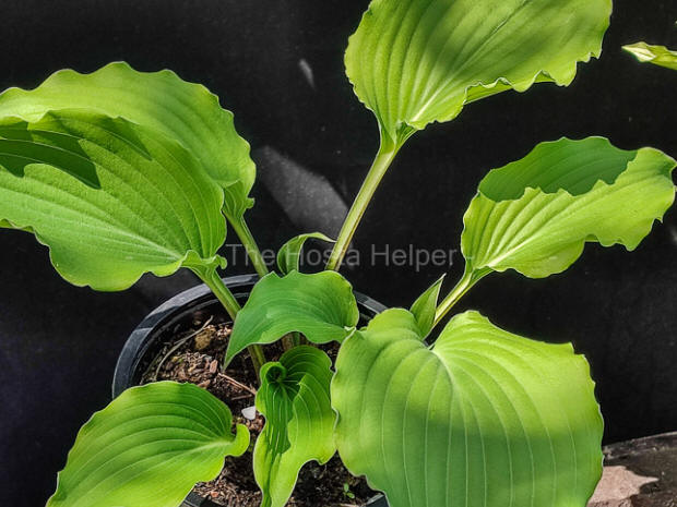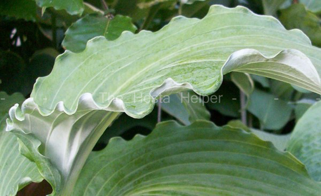 This seedling of an open-pollinated , unnamed seedling of H. pycnophylla was registered by Jeroen Linneman of the Netherlands in 2015. It is a large size plant about 24 inches high by 43 inches wide with medium blue-green foliage. The leaves are lightly cupped, slightly twisted, slightly folded, intensely wavy and dull on top. Pale lavender flowers bloom in July followed by viable seeds.