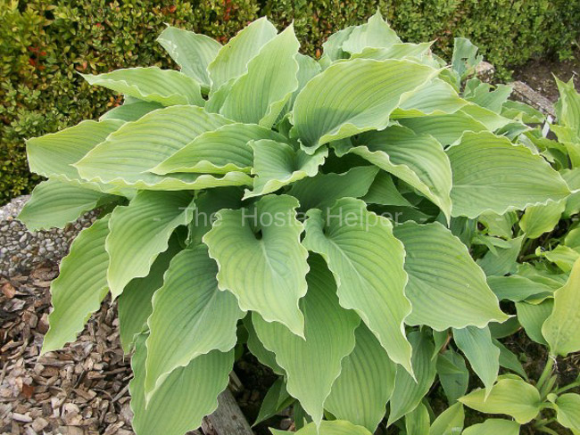 This non-registered cultivar was introduced by Jeroen Linneman of the Netherlands in 2011. It is an upright growing seedling of H. 'Marilyn Monroe' × H. pycnophylla. The foliage is light green in color, wavy and narrow ovate in form.