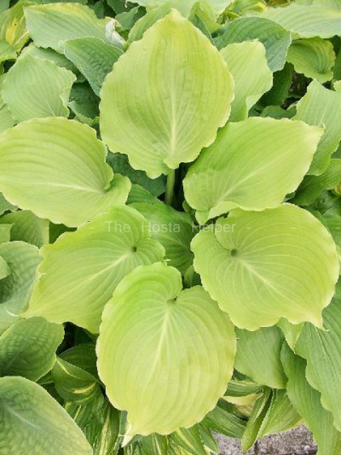 September on scapes about 28 to 35 inches tall. According to the registration materials: "...round leaves lightly cupped with wavy margins