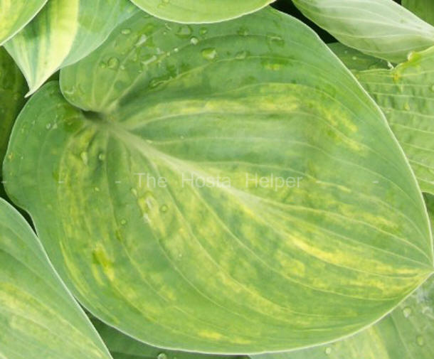This non-registered cultivar was introduced by Jeroen Linneman of the Netherlands in 2012. It is a streaked seedling of H. 'Sally and Bob'.
