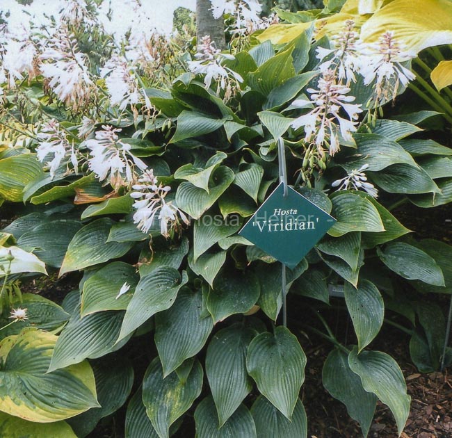 2009. The mound grows into a large size about 23 inches high by 40 inches wide with slightly wavy, ovate, slightly rippled foliage that is dull on top. Its white