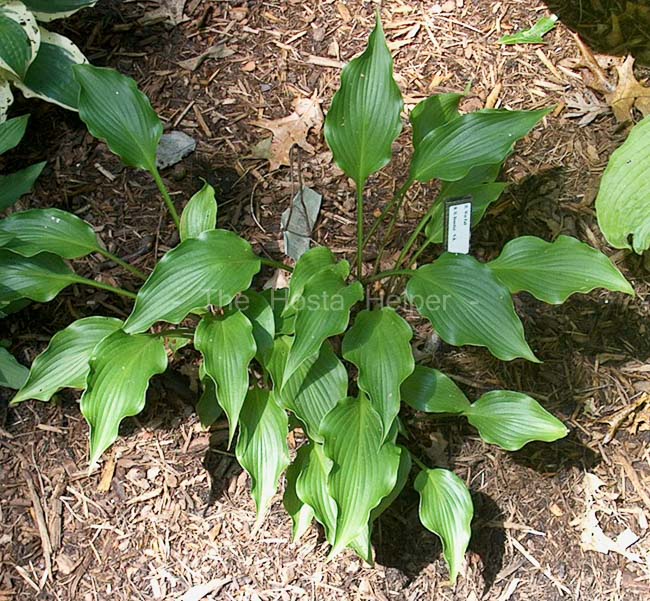 Introduced by Dr. Ralph (Herb) Benedict of Michigan, this is a medium size, dark green hosta of unidentified background . This photo was taken at the Ralph (Herb) and Dorothy Benedict Hosta Hillside in 2009.