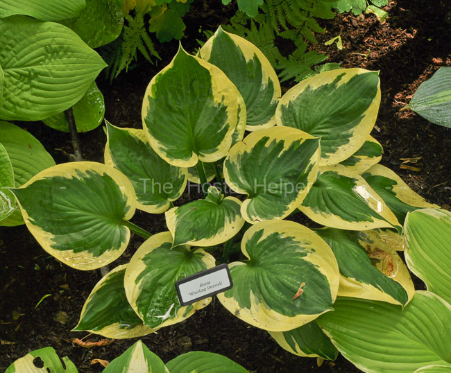 tissue culture sport of H. 'Whirlwind' in 2003. The mound is large size (22 inches high) and the margin variegation