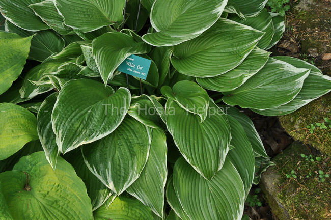 Kevin Walek (Hosta Registrar) in 2009. Its leaves are green with an irregular white marginal variegation. The large