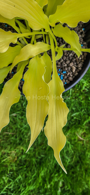 The registration materials state: "...Low growing habit, rippled margins and unusual yellow leaf color."