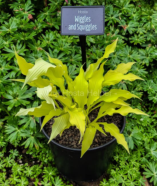 Registered in 2019 by Hans Hansen of Walters Gardens, Inc. of Michigan this cultivar is a seedling of H. 'Atom Smasher' × H. 'Joy Ride'. It is a yellow hosta with leaves that are heavily rippled at the margins, dull on top, lanceolate and intensely wavy overall. Medium purple flowers with dark purple stripes bloom in August on scapes 14 to 34 inches tall. It sets seeds but their viability was not known at the time of registration.