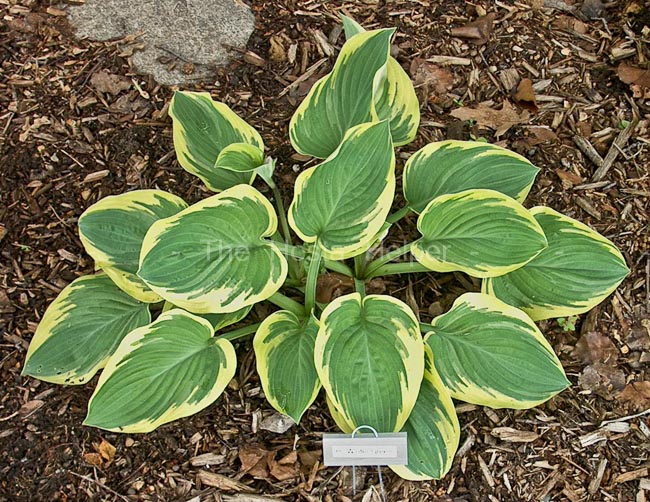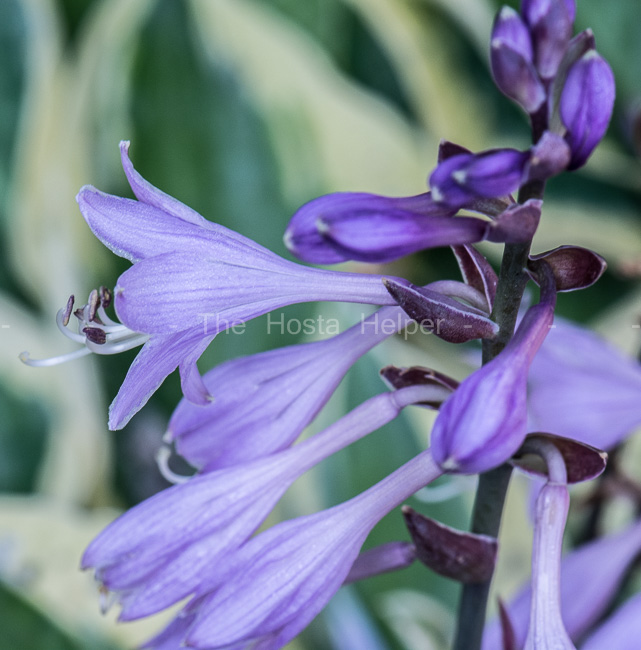 This seedling of H. 'Sea Prize' was registered by Jim Dishon of Michigan in 1994. This medium size (16 inches high) mound of slightly cupped, wavy foliage with above average substance. Purple flowers bloom in July.