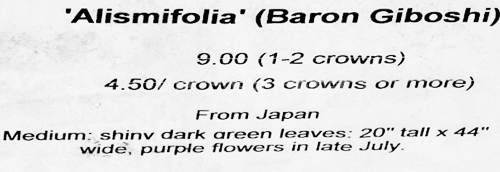 The Latin name alismifolia can be loosely translated as "Alisma-leaved".