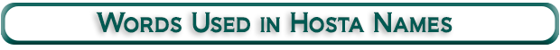 For a bit of fun, we have pulled together many database pages based on words used in the names of hosta cultivars. In some cases, you can open a table that shows all the hostas that have Hadspen, Heart, Holy or Halo in their name for instance. We also have gathered together names that relate to a certain topic such as weather, geography, sports, the arts and many, many others.