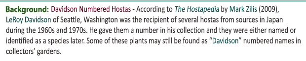 (Note from Mr PGC: There is no such plant as Hosta tardiana. The "Tardiana" is a combination name given to plants that resulted from an unusual cross of H. 'Tardiflora' and H. 'Sieboldiana'. Those hostas are now known as the Tardiana Group. |