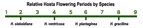 Hosta Journal (1997 Vol. 28 No. 1) states that, "Flowering times of a given cultivar or species vary significantly from region